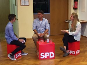 Am Sonntag 24.8.2017 stellte sich unser Bundestagsabgeordneter Thomas Hitschler den Fragen von Windener Jungwählern . Trotz des Termins am Sonntagnachmittag war die Veranstaltung im Bürgerhaus gut besucht. In einem sehr unterhaltsamen Gespräch stellte sich Thomas den Fragen von Hannah Trostheide und Noah Kast. Thomas wurde von den beiden Jungwählern zu verschiedenen Themen befragt. Am Anfang ging es darum, wie Thomas in die Politik gekommen ist. Hier betonte Thomas, dass er familiär geprägt gewesen sei und er stets die SPD als "Partei die Chancen für alle anbieten will" wahrgenommen hat. Im Rahmen seiner beruflichen Laufbahn bei der Stadt Landau hatte er viele direkte Gespräche mit Bürgern und dann bei ADD in Neustadt viele Kontakte zu Unternehmen, Freiberuflern und Handwerksbetrieben. Zu sich selber sagte Thomas, dass er in seiner "Freizeit" auch gerne mal Playstation spielt oder Sport treibt. Auf die Frage, ob er geplant hat Abgeordneter zu werden antwortete Thomas "Politik ist nicht planbar und politische Lebenswege erst recht nicht. Abgeordneter zu werden kann man nicht planen."